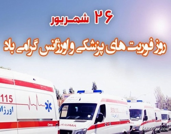۲۶ شهریور، سالروز تشکیل اورژانس پیش بیمارستانی، یادآور ایثار، همت و فداکاری شما فرشتگان نجات. در هر لحظه از شبانه‌روز، در سخت‌ترین شرایط و میان اضطراب و نگرانی و لحظات مرگ و زندگی مردم است که شما با قلبی سرشار از عشق و دستانی توانمند، امید و آرامش را به مددجویان هدیه می‌کنید. و همیشه بدون چشمداشت بر عهدی که در ابتدای کار با خدای خود بسته اید پایدار بوده اید و علی رغم مشکلات از جان ودل خود در این مسیر مایه گذاشتید اجرتان با خالق هستی