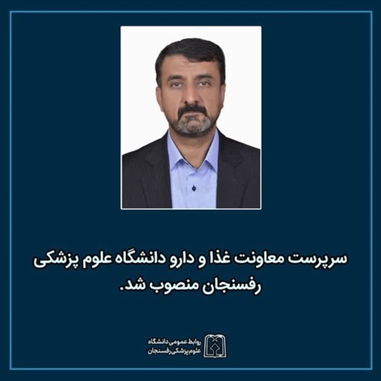 سرپرست معاونت غذا و دارو دانشگاه علوم پزشکی رفسنجان منصوب شد.