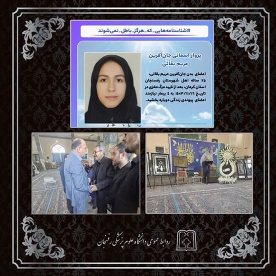 لازم به ذکر است؛ مریم بقائی طی سانحه رانندگی دچار مرگ مغزی شد و با تصمیم فداکارانه بازماندگان در یک عمل سخاوتمندانه اعضای پیکرش به چند بیمار نیازمند پیوند جان دوباره بخشید.