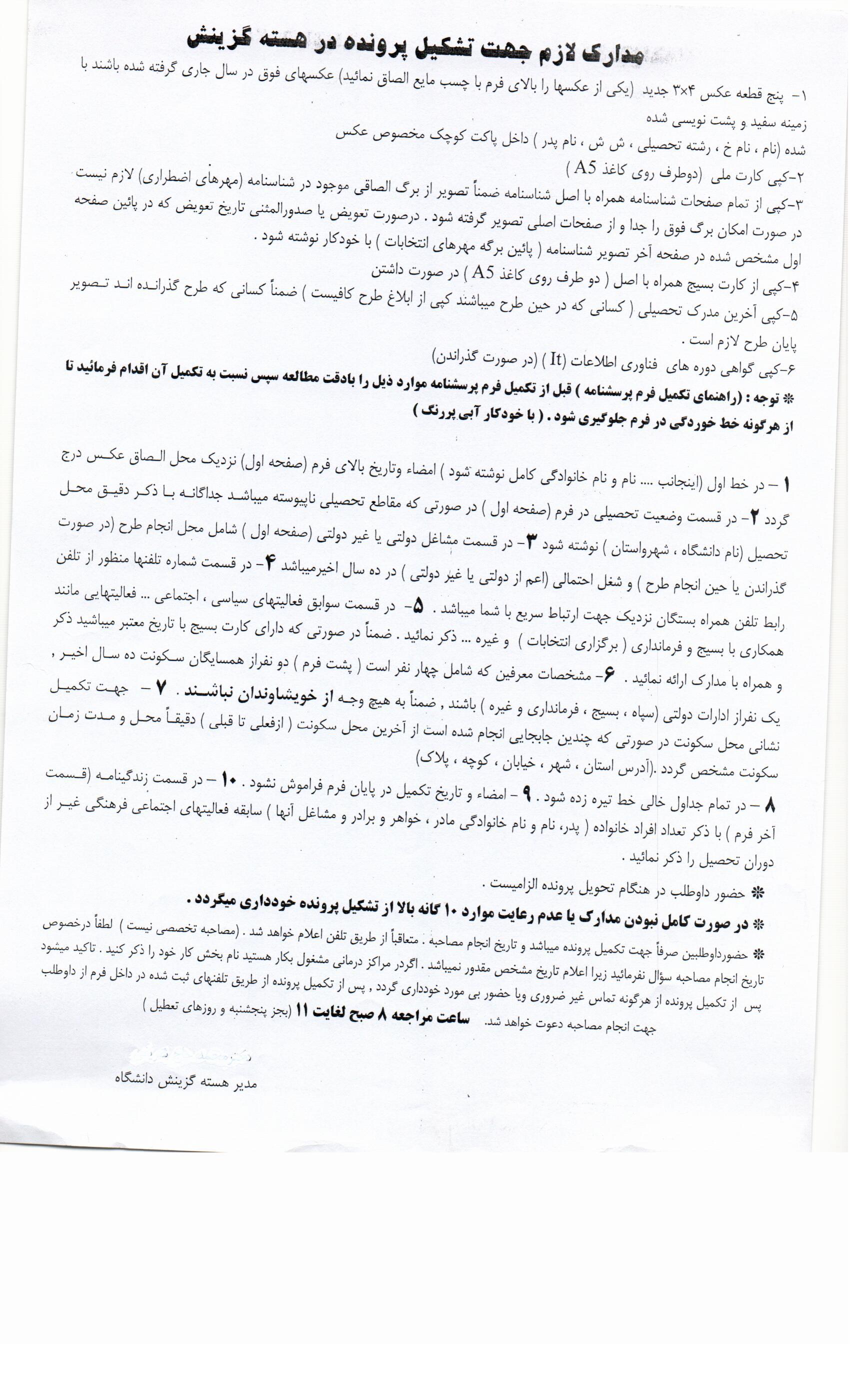 مدارک مورد نیاز جهت تکمیل پرونده هسته گزینش