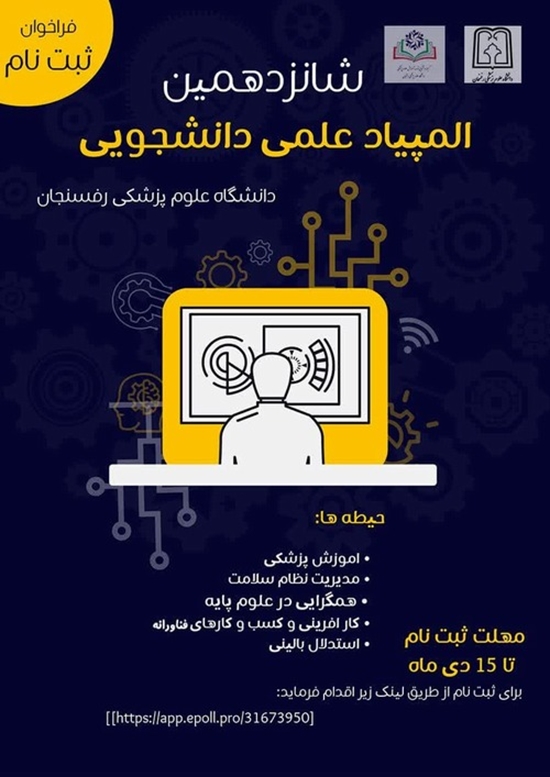 فراخوان ثبت نام شانزدهمین دوره المپیاد علمی دانشجویی ثبت نام تا سی دی ماه تمدید شد گروه خبری : اطلاعیه,اخبار روابط عمومی,اخبار دانشگاه کد خبر : 16204 کپی لینک کوتاه کلمات کلیدی روابط_عمومی_دانشگاه_علوم_پزشکی_رفسنجان_