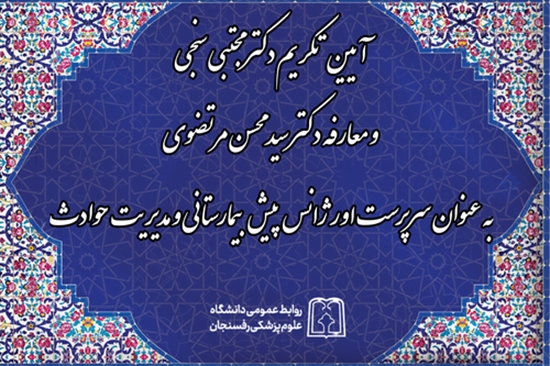 دکتر دهقانی در پایان با اهداء لوحی از زحمات مجتبی سنجی؛ رئیس پیشین اورژانس پیش‌بیمارستانی و مدیر حوادث دانشگاه تقدیر و حکم انتصاب را به سید محسن مرتضوی اهدا و برای ایشان آرزوی موفقیت کرد.