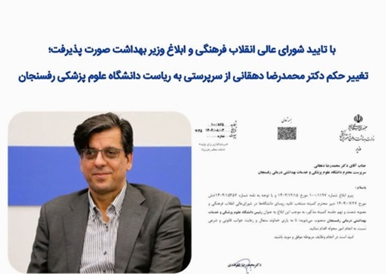 تغییر حکم دکتر محمدرضا دهقانی از سرپرستی دانشگاه علوم پزشکی رفسنجان به ریاست دانشگاه با تایید شورای عالی انقلاب فرهنگی