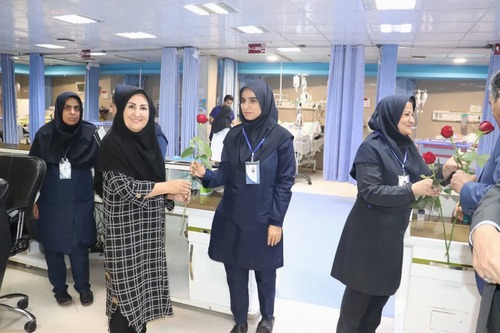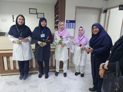 همزمان نیز جمعی دیگر از مسئولین دانشگاه علوم پزشکی با حضور در سایر مراکز درمانی از جمله نیک نفس، مرادی از زحمات تمامی پرستاران و کادر درمان این مراکز قدردانی کردند.